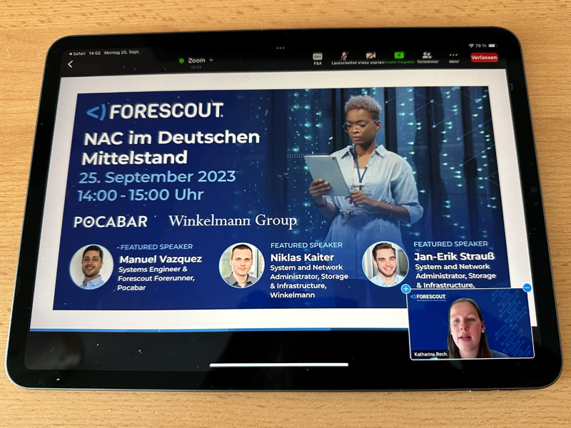 After a welcome by Katharina Rech from our partner Forescout Technologies, POCABAR's VP CyberSecurity, Manuel Vazquez, first spoke about the challenges of network security, in particular the detection and monitoring of all connected end devices. Afterwards, our client Winkelmann Group contributed the appropriate success story from practice right away.