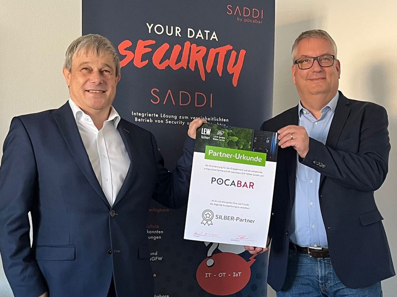 These two game changers are about to work together with united strength. A few weeks prior to moving into this groundbreaking data center, Wolfgang Mair (POCABAR CEO) received his Silver Partner certificate, presented by Thomas Taubenberger (LEW Key Account Manager).